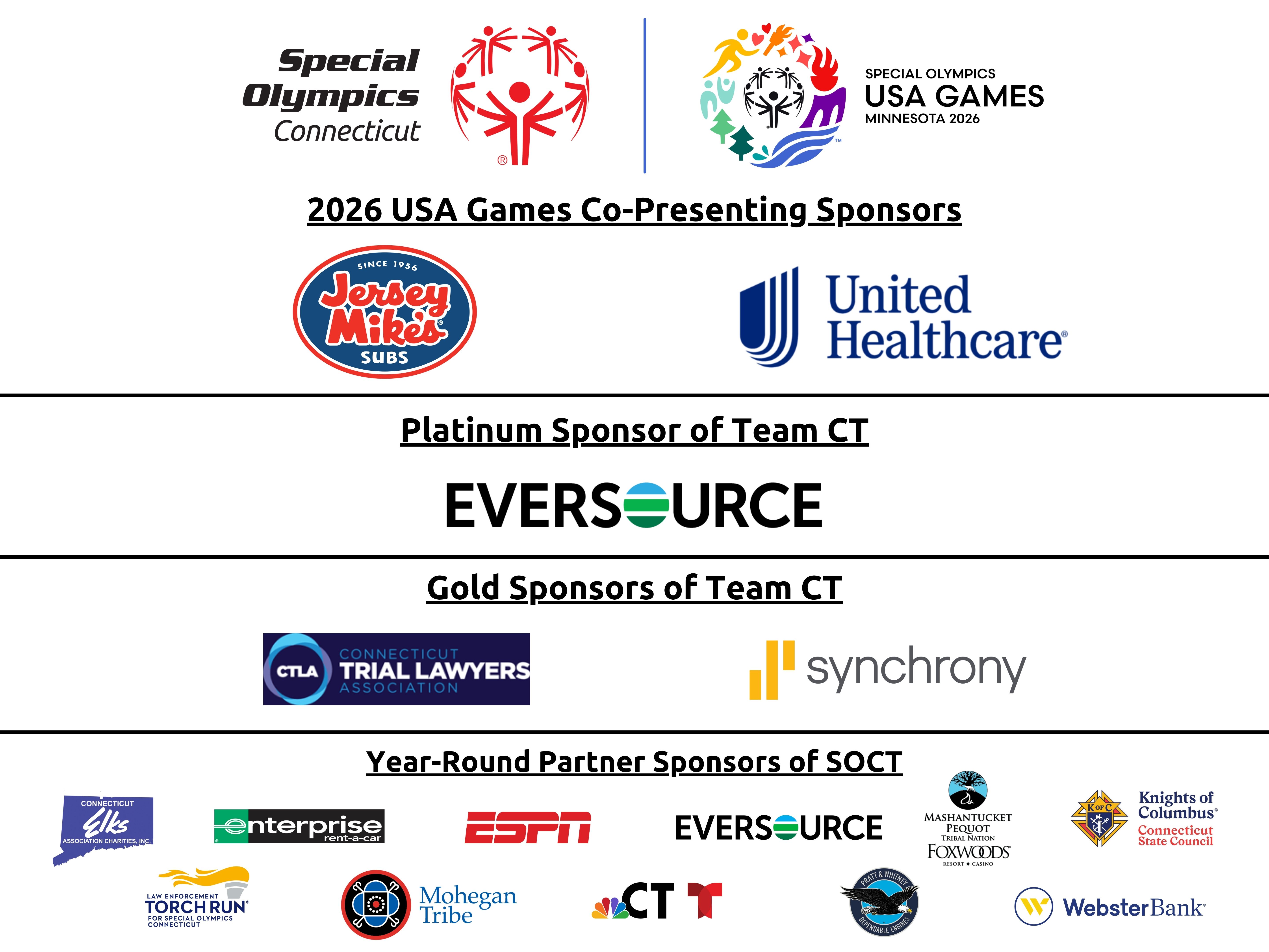 Special Olympics Connecticut is sending 58 members to represent our great state at the 2026 Special Olympics USA Games Minnesota, hosted in the Twin Cities of Minneapolis and Saint Paul, June 20-26, 2026. Thirty-nine athletes and Unified Sports® partners will compete in five sports and the Youth Leadership Experience, fully supported by 19 coaches and staff. Team CT will represent 33 towns and cities from across Connecticut.
